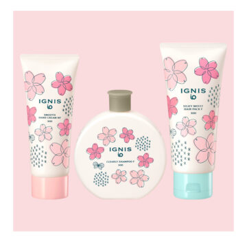イグニスイオの人気のハンドクリームとシャンプー・ヘアパックの3品が、今だけのサクラの香りとパッケージで登場!